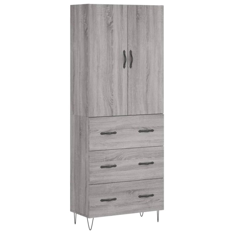 Висок шкаф, сив сонома, 69,5x34x180 см, инженерно дърво