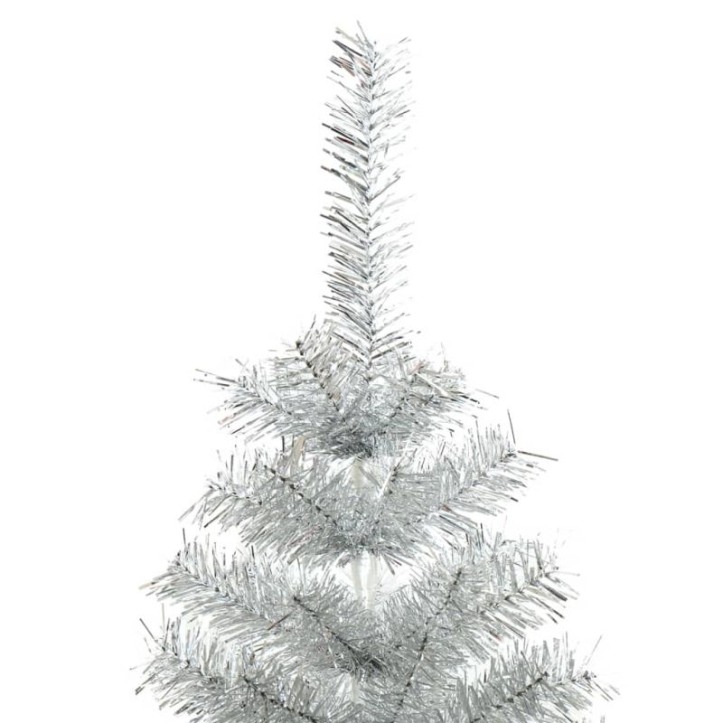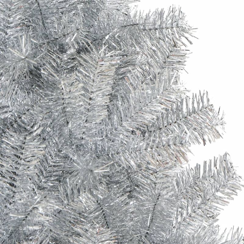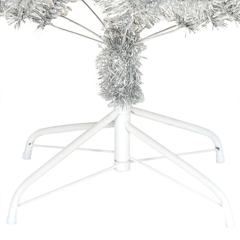 Изкуствена коледна елха със стойка сребриста 180 см PET
