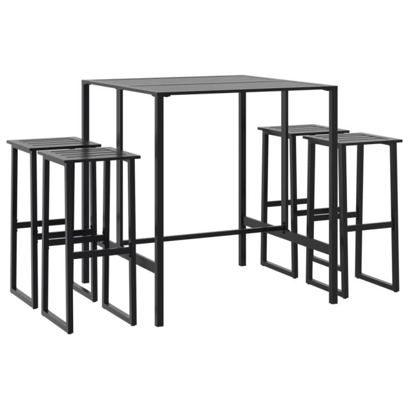 Градински бар комплект 5 части черен прахово боядисана стомана