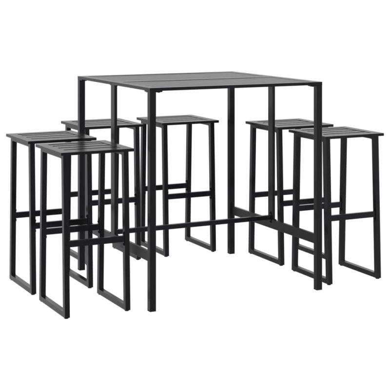 Градински бар комплект 7 части черен прахово боядисана стомана