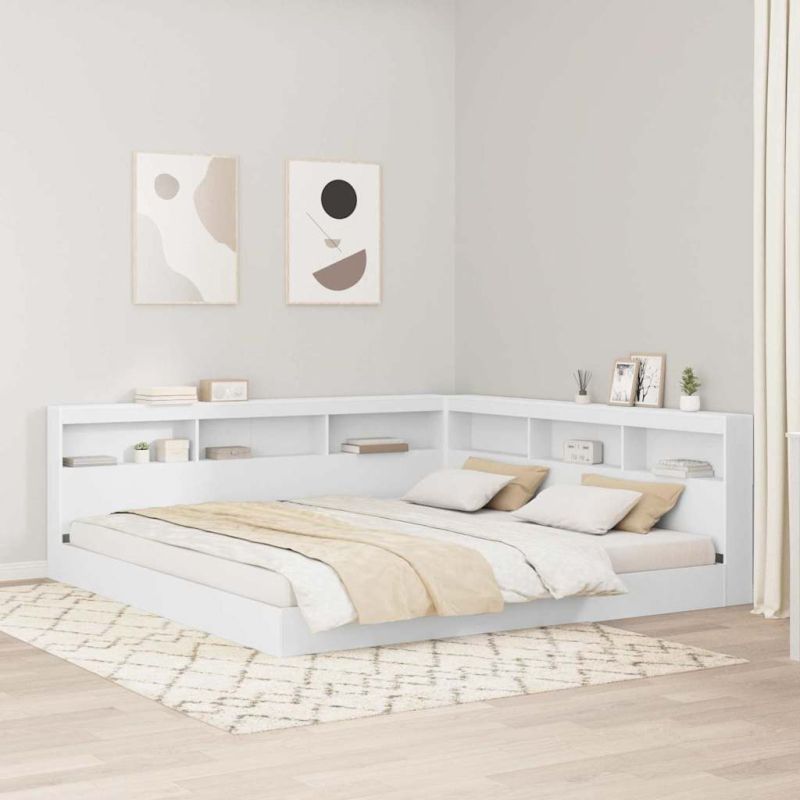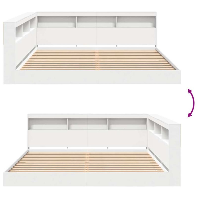 Легло с библиотека с таблото Бяло 180 x 200 cm Инженерно дърво