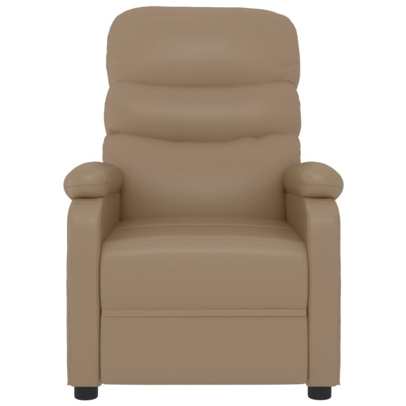 Облегнете се и се отпуснете в този изключително комфортен наклоняем стол! Функция за ръчно накланяне: Накланящият се стол е специално проектиран с 3 позиции на наклон, така че да можете да регулирате ръчно облегалката и поставката за крака според вашето удобство.Удобно седене: Дебело подплатената седалка, облегалката и широките подлакътници, покрити с изкуствена кожа, осигуряват уютно и топло усещане, което ви кара да се чувствате като в прегръдка, докато седите. Изкуствената кожа е много издръжлив материал. Устойчива е на петна, което я прави лесна за почистване с влажна кърпа. Гладката повърхност също така придава луксозен вид и красотата на истинската кожа.Здрава и стабилна рамка: Рамката, изработена от дърво и метал, осигурява здрава структура и стабилност. Този накланящ се фотьойл е удобен и издръжлив.
