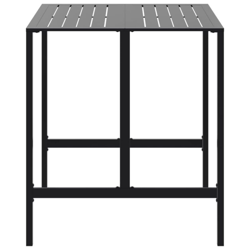 Тази бар маса със стилен вид е удивително допълнение към жилищното ви пространство на открито и закрито. Прахово боядисана стомана: Тази бар маса е изработена от прахово боядисана стомана, която е изключително твърд и здрав материал. Тя предлага здравина и стабилност. Праховото боядисване на повърхността на стоманата създава защитен слой срещу ръжда, корозия и износване.Плот с летви: Стоманеният плот с летвен дизайн е идеален за поставяне на напитки, храна и т.н.Широки приложения: Тази многофункционална бар маса се отличава с перфектна форма, за да се впише във всяка среда във вашия дом. Могат да се използват във вашата кухня, трапезария, всекидневна и др.