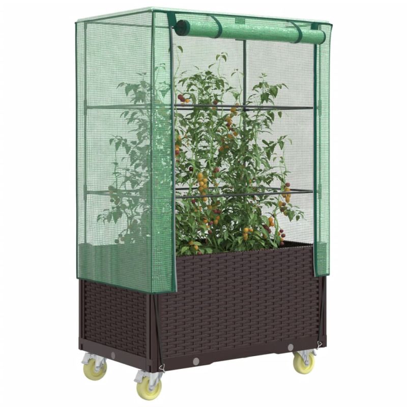 Тази повдигната леха с капак за оранжерия и колела осигурява много пространство за отглеждане със здравата си носеща рамка.Здрава конструкция: Повдигнатата леха, изработена от полипропилен, има здрава рамка от железни тръби отгоре, която позволява на растенията да растат и да се катерят през нея.Функционален калъф: Повдигнатата леха е с водоустойчив полиетиленов калъф, който предпазва растенията от екстремни температури и не допуска насекоми, птици и дребни животни.Практичен дизайн: Повдигнатото легло е снабдено с ципове за проветряване, които ви позволяват да регулирате покривалото според нуждите. Освен това в горната част има въжета, които улесняват закрепването на мрежата към тръбата.Лесно преместване: Повдигнатото легло има четири колела, като единият чифт е оборудван със спирачки за лесно придвижване и сигурно поставяне.Дизайн с вид на ратан: Повдигнатото легло с дизайн, наподобяващ ратан, придава естествен чар на външното ви жизнено пространство.Широки приложения: Повдигнатата леха осигурява достатъчно пространство за вашите растения, зеленчуци, билки и цветя. Можете да го използвате в градини, дворове, балкони и т.н.
