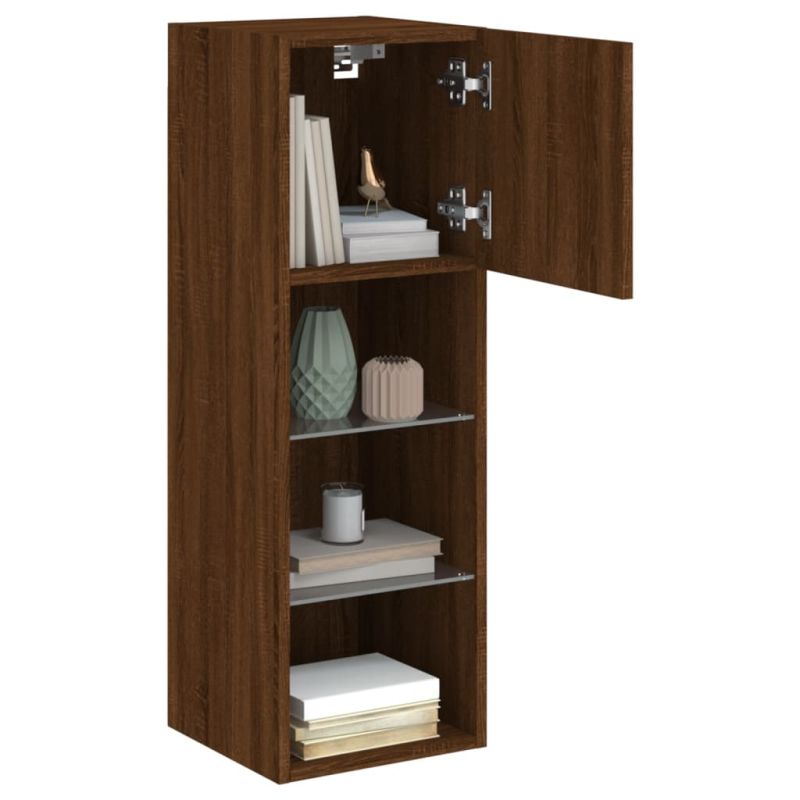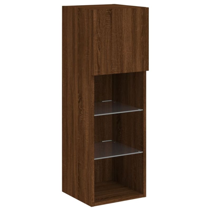 ТВ шкафове с LED осветление 2 бр кафяв дъб 30,5x30x90 см