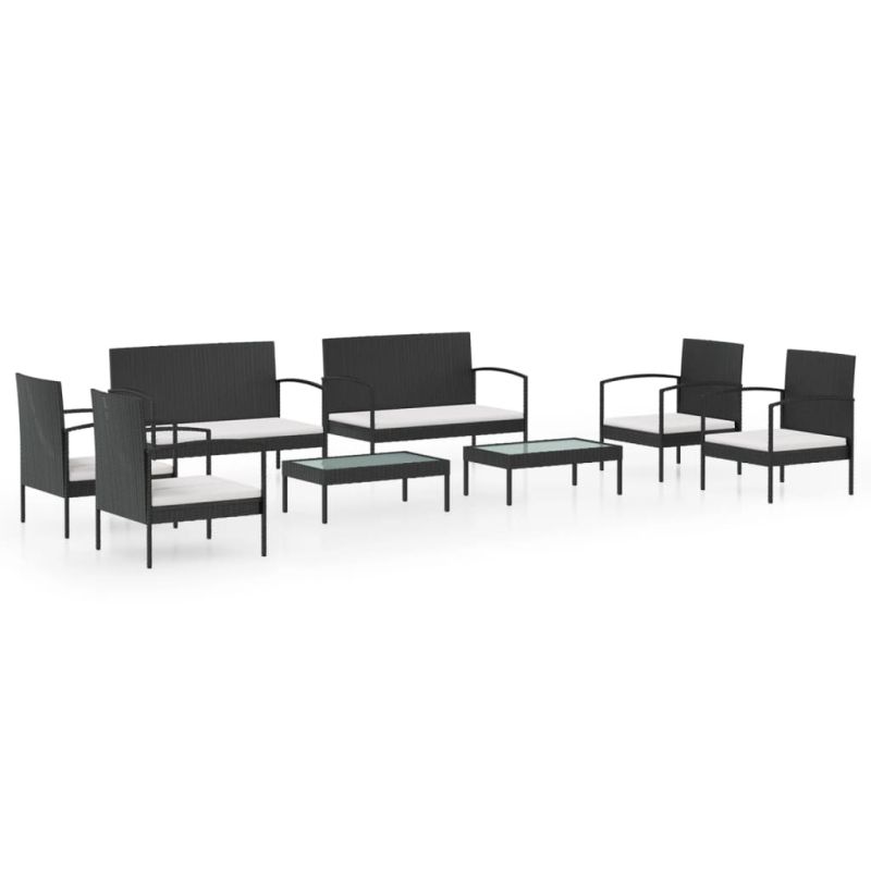Градински лаундж комплект с възглавници 8 части черен полиратан