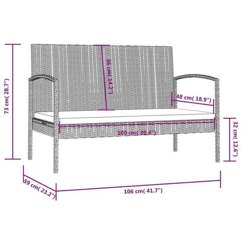 • Размери на 2-местния диван: 106 x 59 x 73 cм (Ш x Д x В)