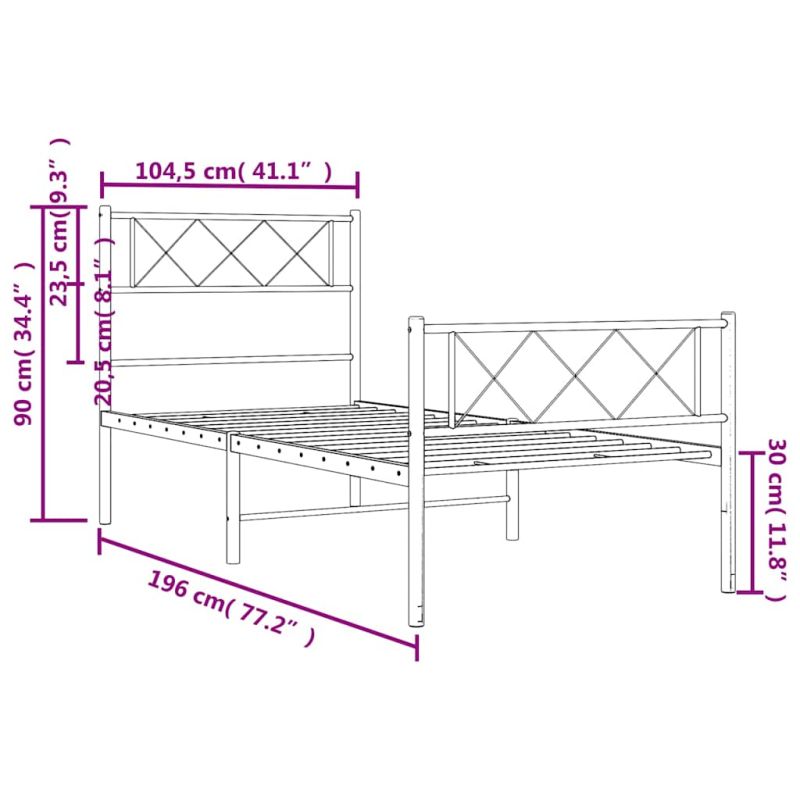 Метална рамка за легло с горна и долна табла, черна, 100x190 см