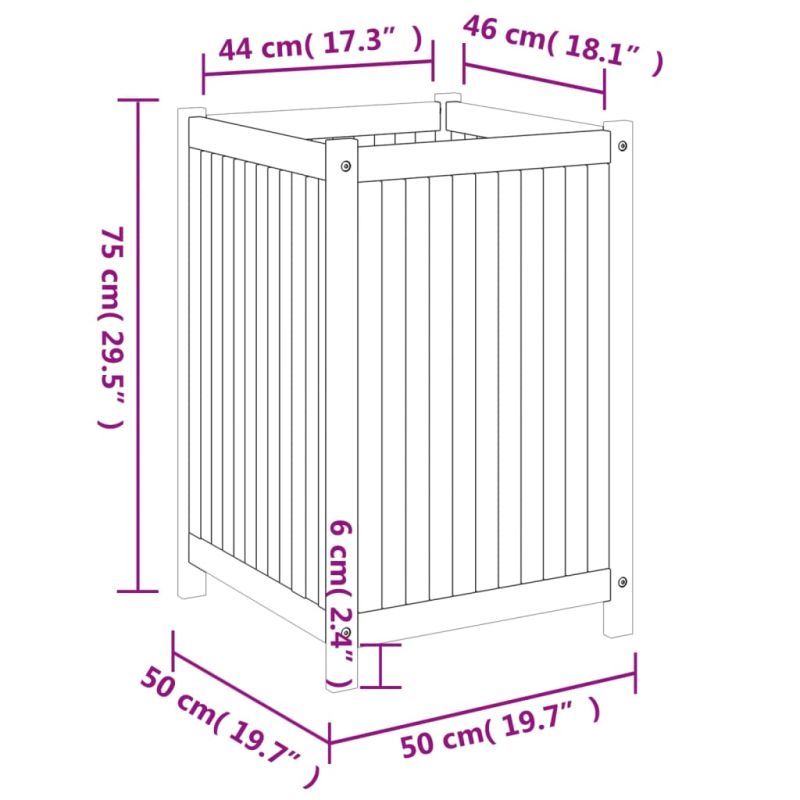 Градинска кашпа с вложка 50x50x75 см масивна акация