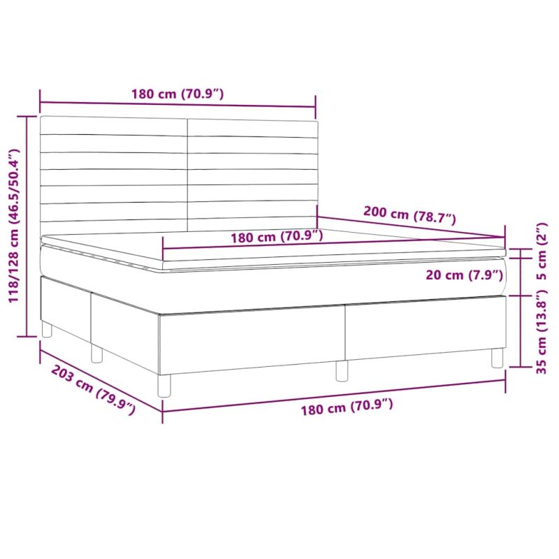 Използвайте това боксспринг легло с матрак и LED, за да се насладите на спокоен сън! Това е централната точка на вашата спалня. Издържлива тъкан: Тъканта се отличава със семпъл и изчистен вид и е дишаща и издръжлива.Практична табла за глава: Горната табла за легло се регулира на височина според вашите предпочитания. Горната част на леглото ви осигурява отлична опора за гърба, докато седите в леглото, за да четете или гледате телевизия.Цветна LED лента: Внесете игриви нотки в тъмнината с цветни LED светлини!Покет пружинен матрак: Вградените индивидуални покет пружини са известни с много високото си качество, като същевременно осигуряват високо ниво на издръжливост и адаптивност. Те могат ефективно да абсорбират шума и ударите, причинени от мятане и въртене.Благоприятен за кожата топ матрак: Протекторът за матрак има издръжлива, както и щадяща кожата материя, което я прави мека и удобна. Забележка:От хигиенни съображения матракът не може да бъде върнат, ако опаковката е отстранена или отворена.Само частта със символ на ножица може да бъде изрязана и само частта с USB ще продължи да функционира както преди.Всеки продукт се доставя с ръководство за сглобяване в кашона за лесно сглобяване.Продуктът има USB конектор, но не е включен сертифициран източник на захранване от 5V USB. Този продукт се захранва с DC 5V, но сертифицираният 5V USB източник на захранване не е включен в комплекта. По-високото напрежение може да доведе до прегряване на устройството и да доведе до повреда на устройството и потенциален риск от прегряване и пожар.