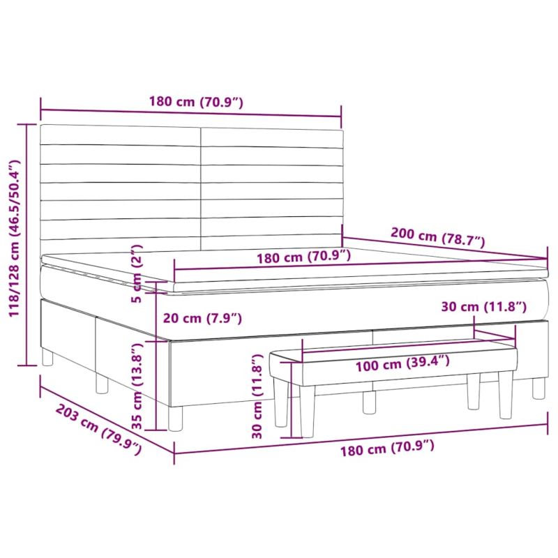 Използвайте това боксспринг легло, за да се насладите на спокоен сън! Предлага ви максимален релакс и приятен сън. Издържлива тъкан: Тъканта се отличава със семпъл и изчистен вид и е дишаща и издръжлива.Практична табла за глава: Горната табла за легло се регулира на височина според вашите предпочитания. Горната част на леглото ви осигурява отлична опора за гърба, докато седите в леглото, за да четете или гледате телевизия.Покет пружинен матрак: Вградените индивидуални покет пружини са известни с много високото си качество, като същевременно осигуряват високо ниво на издръжливост и адаптивност. Те могат ефективно да абсорбират шума и ударите, причинени от мятане и въртене.Средно твърда поддръжка: Матракът за легло перфектно осигурява допълнителна стабилност и точното ниво на твърдост, без да се жертва комфорта. Така той е идеален за спящи по гръб или корем.Благоприятен за кожата топ матрак: Протекторът за матрак има издръжлива, както и щадяща кожата материя, което я прави мека и удобна.Многофункционална пейка: Тази пейка може да служи като допълнително място за сядане във вашия дом. Също така може да се използва като пейка в края на легло. Забележка:От хигиенни съображения матракът не може да бъде върнат, ако опаковката е отстранена или отворена.Всеки продукт се доставя с ръководство за сглобяване в кашона за лесно сглобяване.