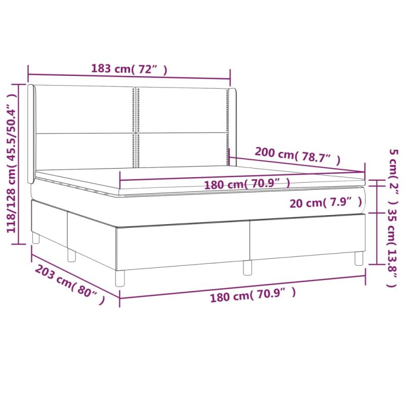 Използвайте това боксспринг легло с матрак и LED, за да се насладите на спокоен сън! Това е централната точка на вашата спалня. Издържлива тъкан: Тъканта се отличава със семпъл и изчистен вид и е дишаща и издръжлива.Практична табла за глава: Горната табла за легло се регулира на височина според вашите предпочитания. Горната част на леглото ви осигурява отлична опора за гърба, докато седите в леглото, за да четете или гледате телевизия.Цветна LED лента: Внесете игриви нотки в тъмнината с цветни LED светлини!Покет пружинен матрак: Вградените индивидуални покет пружини са известни с много високото си качество, като същевременно осигуряват високо ниво на издръжливост и адаптивност. Те могат ефективно да абсорбират шума и ударите, причинени от мятане и въртене.Благоприятен за кожата топ матрак: Протекторът за матрак има издръжлива, както и щадяща кожата материя, което я прави мека и удобна. Забележка:От хигиенни съображения матракът не може да бъде върнат, ако опаковката е отстранена или отворена.Само частта със символ на ножица може да бъде изрязана и само частта с USB ще продължи да функционира както преди.Всеки продукт се доставя с ръководство за сглобяване в кашона за лесно сглобяване.Продуктът има USB конектор, но не е включен сертифициран източник на захранване от 5V USB. Този продукт се захранва с DC 5V, но сертифицираният 5V USB източник на захранване не е включен в комплекта. По-високото напрежение може да доведе до прегряване на устройството и да доведе до повреда на устройството и потенциален риск от прегряване и пожар.