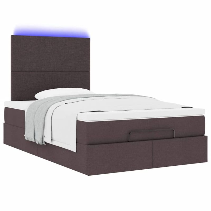 Османска легло с матрак и LED, тъмнокафяво, 120x190 см, плат