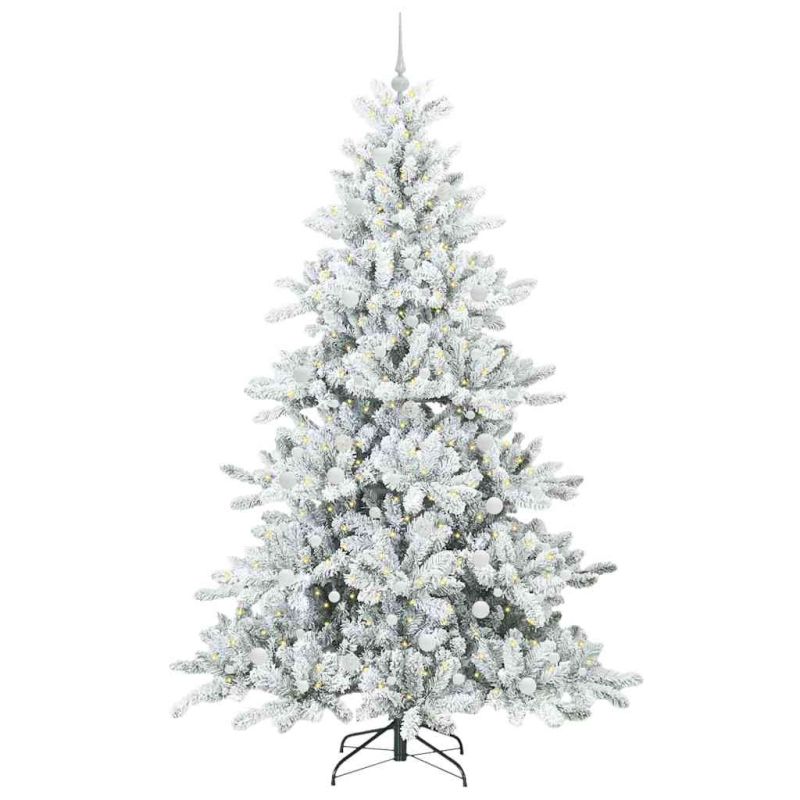 Изкуствено коледно дърво с хингед Бяло 240 cm PVC и стомана