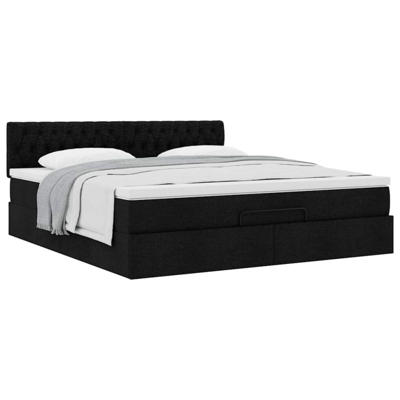 Османска легло с матрак, черно, 180x200 см, плат
