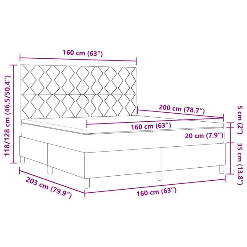 Легло с пружинирана основа Светлосиво 160 x 200 cm текстил