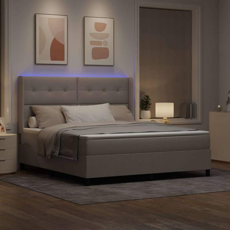 LED кутия за пружини с легло Таупе 180 x 200 cm текстил