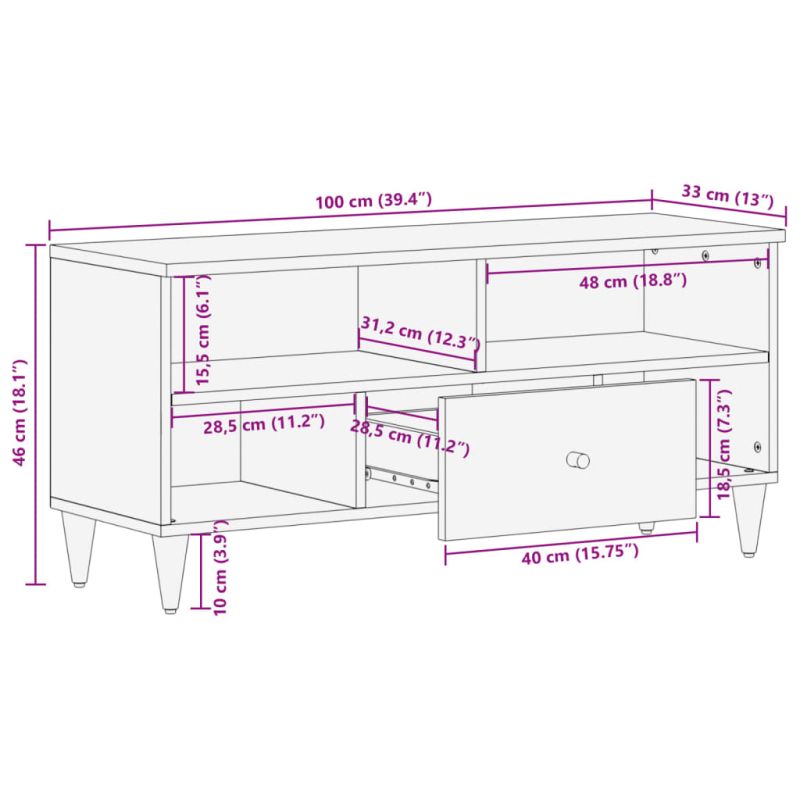 ТВ шкаф, 100x33x46 см, мангово дърво масив