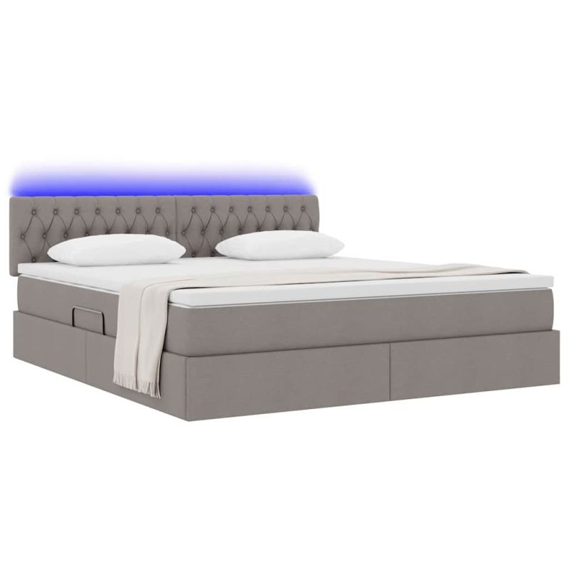 Легло с място за съхранение и LED Таупе 180 x 200 cm текстил