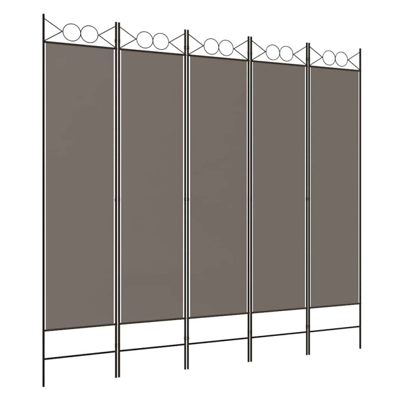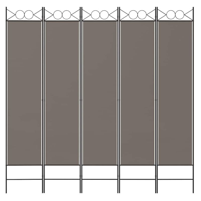Параван за стая, 5 панела, антрацит, 200x220 cм, текстил