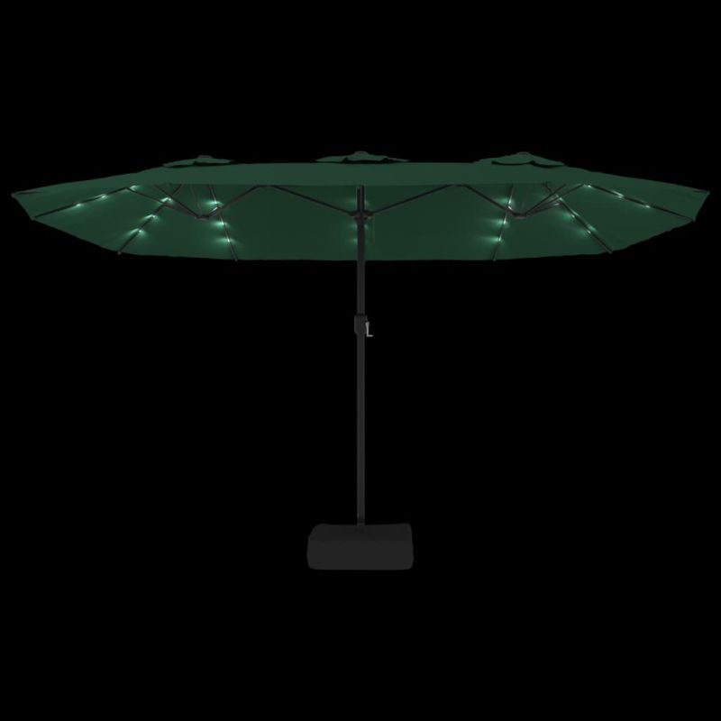Градински чадър с двоен покрив и LED, зелен, 449x265 см