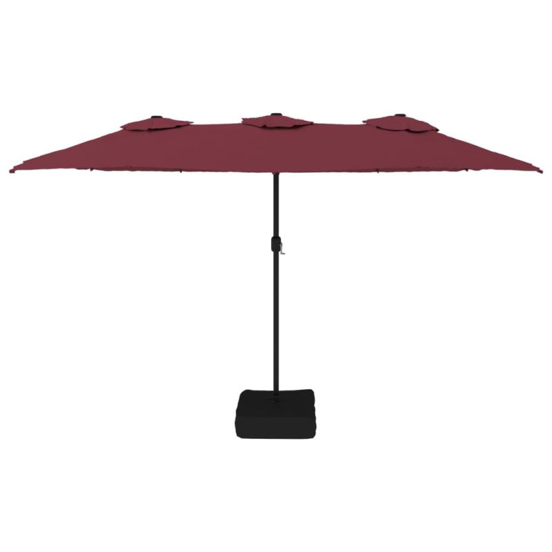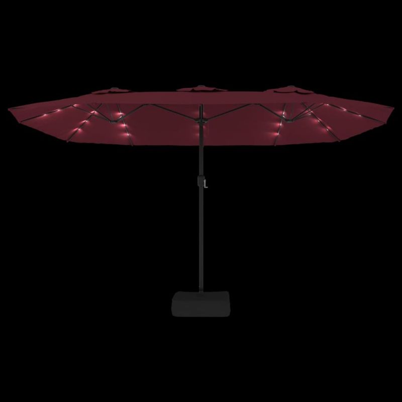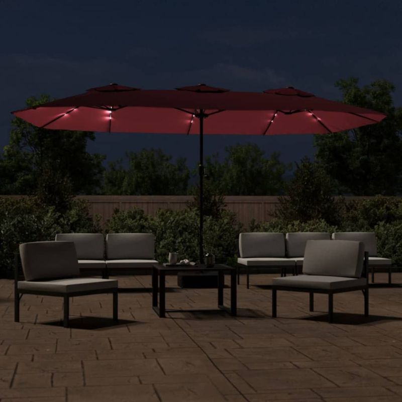 Градински чадър с двоен покрив и LED, бордо червен, 449x265 см