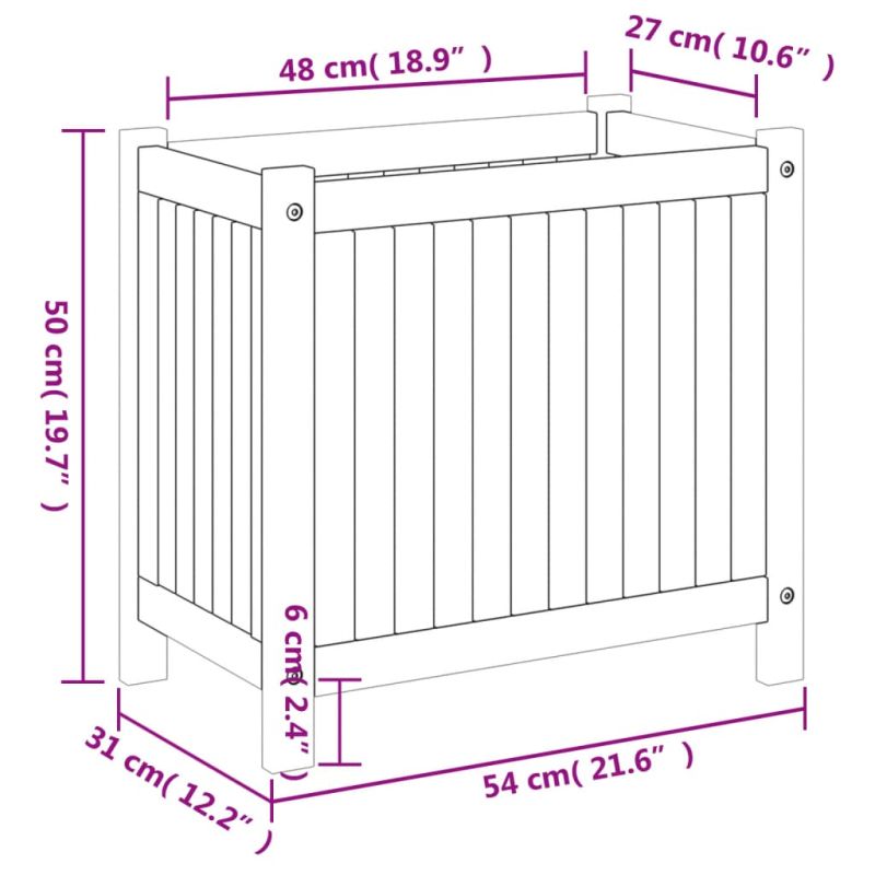 Градинска кашпа с вложка 54x31x50 см масивна акация