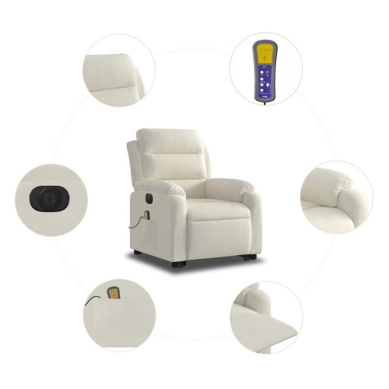 Електрически изправящ масажен реклайнер стол кремав кадифе
