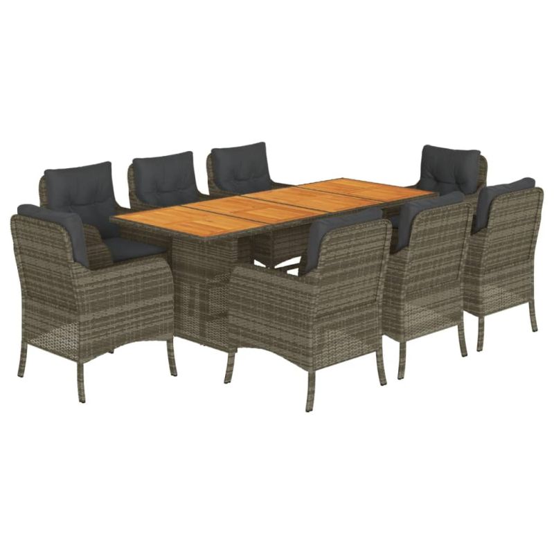 Градински трапезен комплект 9 части с възглавници сив полиратан