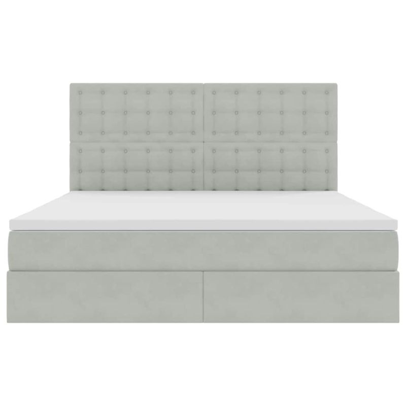 Това легло за съхранение с матрак е елегантно и стилно, перфектно за всяка спалня. Кадифеното покритие излъчва лукс, а практичността му го прави уникален избор. То е перфектната акцентна част, която се вписва чудесно в различни декори. Предлага комфорт и удобство в един модерен пакет, идеален за хора, които искат красота и функционалност в мебелите си. Материали: Леглото е с луксозно кадифено покритие, което комбинира комфорт и естетика. Мекото усещане създава уют и добавя елегантност, което го прави подходящо за всяка спалня. Кадифената рамка в комбинация с метала осигурява стабилност и дълговечност. Включени компоненти: Леглото разполага с удобна фиксирана рамка с ламели, която поддържа различни позиции за сън. Включената кадифена табла допринася за стила и удобството. Матракът съчетава пяна и пружини за перфектна опора и намаляване на движението. LED осветлението, интегрирано в рамката, внася настроение в стаята. Характеристики / Функция / Дизайн: С хидравличния механизъм, леглото предлага лесен достъп до подземното пространство за съхранение, което е чудесно за спестяване на място. RGB LED осветлението осигурява перфектно настроение, което подхранва зен атмосфера. Тези характеристики са безпроблемно интегрирани в съвременния дизайн на леглото. Препоръчителна употреба: Идеално за спални, това легло е за тези, които искат повече пространство за съхранение, без да жертват елегантността. С стил, подходящ за минималистични пространства, LED осветлението е страхотно за тези, които търсят иновации в обзавеждането. Грижа и поддръжка: За да запазите неговата красота, почиствайте редовно с суха кърпа. Избягвайте агресивни химии. LED осветлението чистите нежно с микрофибърна кърпа. Тази проста грижа ще запази формата и функцията на леглото. Този продукт се захранва с DC 5V, но сертифицираният 5V USB източник на захранване не е включен в комплекта. По-високото напрежение може да доведе до прегряване на устройството и да доведе до повреда на устройството и потенциален риск от прегряване и пожар.