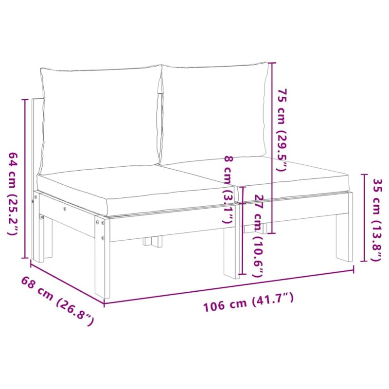 Отпуснете се и се насладете на живота на открито в този удобен 2-местен дървен градински диван! Масивна акациева дървесина: Масивното акациево дърво е красив естествен материал. Акациевото дърво е тропическа твърда дървесина, която е плътна, здрава и издръжлива.Удобна седалка: Тази мебел за открито, снабдена с плътно подплатени възглавници, предлага удобство при сядане.Калъф, който може да се сваля и пере: Възглавницата на седалката и на гърба имат подвижни калъфи за лесно пране и поддръжка.Модулен дизайн: Тези външни мебели имат модулен дизайн, което ги прави напълно гъвкави и лесни за преместване, така че можете да създадете персонализирана подредба на външни мебели. Добре е да се знае:За да сте сигурни, че вашите външни мебели ще останат красиви, ви препоръчваме да ги защитите с водоустойчиво покривало.Калъфките за възглавници могат да се перат на ръка, а не в пералня. Максимално 110 кг на седалка.