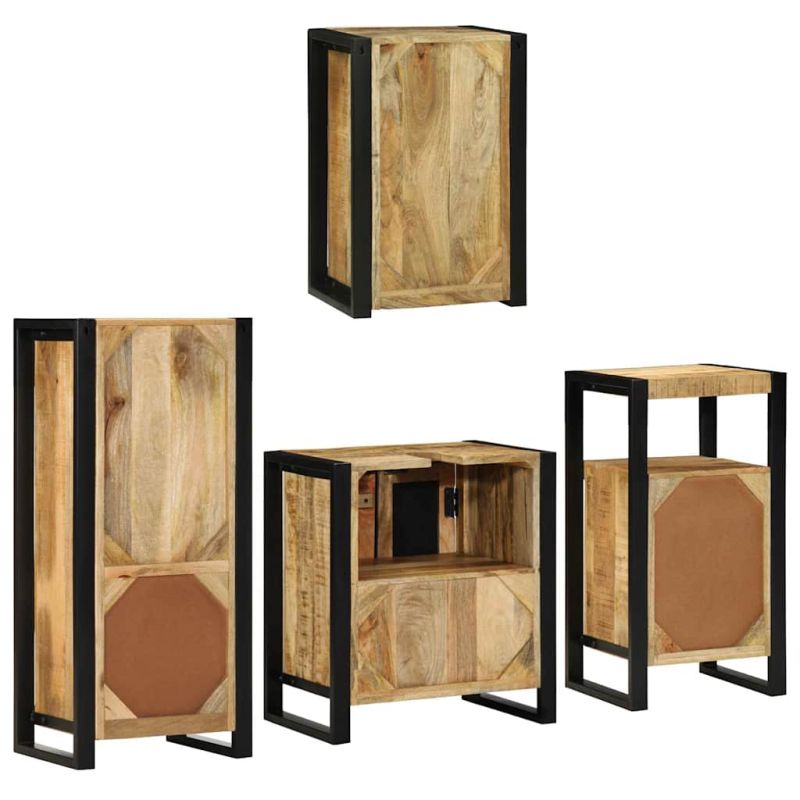 Комплект мебели за баня 4 pcs Кафяво Солидно мангово дърво