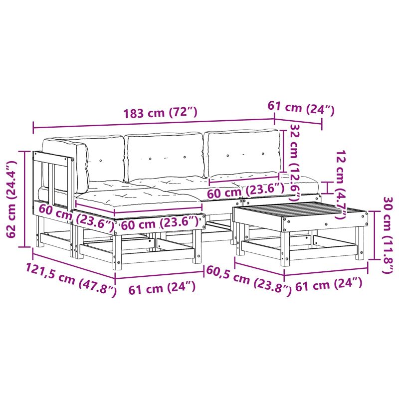 Този комплект за градински мебели е перфектен начин да обновиш откритото си пространство. Със съвременен модулен дизайн, който лесно се вписва в модерни тераси и градини, той осигурява достатъчно място за всички да се забавляват. Проектиран за употреба на открито, добавя гладкост и топлина в обстановката. Масивна борова дървесина: Този комплект градински мебели е изработен от масивна борова дървесина, което гарантира стабилност и издръжливост, идеален за открити събирания. Материалът красиво допълва естетиката на всяка градина. Съвременен стил: Комплектът предлага модерен и свеж дизайн, който лесно пасва на всякаква обстановка. Гладките линии и стилната текстура добавят красота на градината, докато се съчетава с декора. Голям капацитет за сядане: Проектиран да побере много гости, комплектът е идеален за социални събития или отпускащи следобеди, предлагайки комфорт за всеки. Устойчивост: Създаден да устоява на атмосферните условия, комплектът е направен от здрави материали, което гарантира дълготрайна красота и функция. Лесна поддръжка: За да запазиш отличното му състояние, използвай покривала, когато не го ползваш, и винаги внасяй възглавниците при лошо време. Избегни пряка слънчева светлина за запазване на цветовете и качеството.