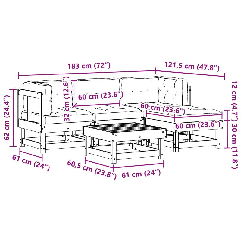 • 5 x Завивки за сядане: 60 x 60 x 12 см (Д x Ш x В)