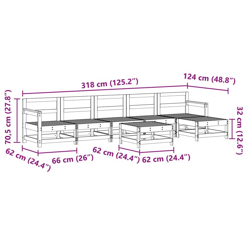 Този комплект градинска мебел с правоъгълна форма лесно се вписва във всяка градина или тераса. Съчетанието от стил и практичност го прави перфектен за всякакви събирания или релаксация, независимо дали е на закрито или навън. Гладката текстура и едноцветният му дизайн придават елегантен, но ненатрапчив вид, който допълва всякакви интериори. Идеален е както за големи, така и за по-интимни събирания, като предоставя достатъчно място и комфорт за всички гости. Масивна борова дървесина: Комплектът е от масивна борова дървесина, известна с издръжливостта си на открито. Дървото придава топъл вид, а лакът го предпазва от времето и увеличава дълготрайността му. Такъв стил подхожда отлично на всяко открито пространство. Съвременен стил: С модерен и свеж вид, комплектът градинска мебел хармонира с всяка съвременна градина. Неговият минималистичен подход е елегантен и полезен, добавяйки стил на вашия декор. Квадратни подлакътници и крака: С квадратни подлакътници и крака от масивна борова дървесина, дизайнът е здрав и естетически приятно. Геометричните форми увеличават стабилността, докато предоставят комфорт за вас и вашите гости. Детайли за сглобяване: Сглобяването е лесно и може да става само от двама души – просто ви трябва отвертка и метър. Прекрасно е, че не отнема много време! Устойчивост на температура и време: Въпреки че е за вътрешна и външна употреба, комплектът понася различни метеорологични условия, стига да се грижи правилно. Защитете го от слънчевите лъчи и ползвайте покривало, когато не го използвате, за да удължите живота му.