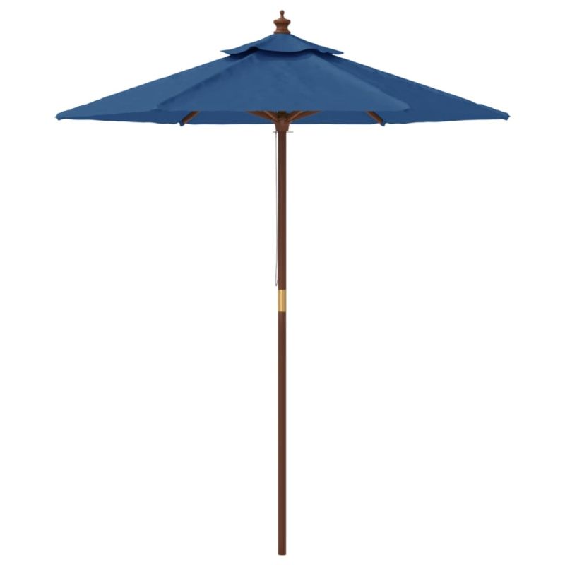 Градински чадър с дървен прът, лазурносин, 196x231 см