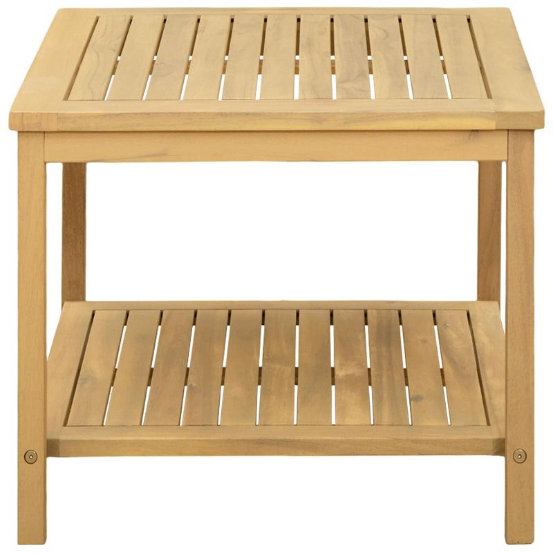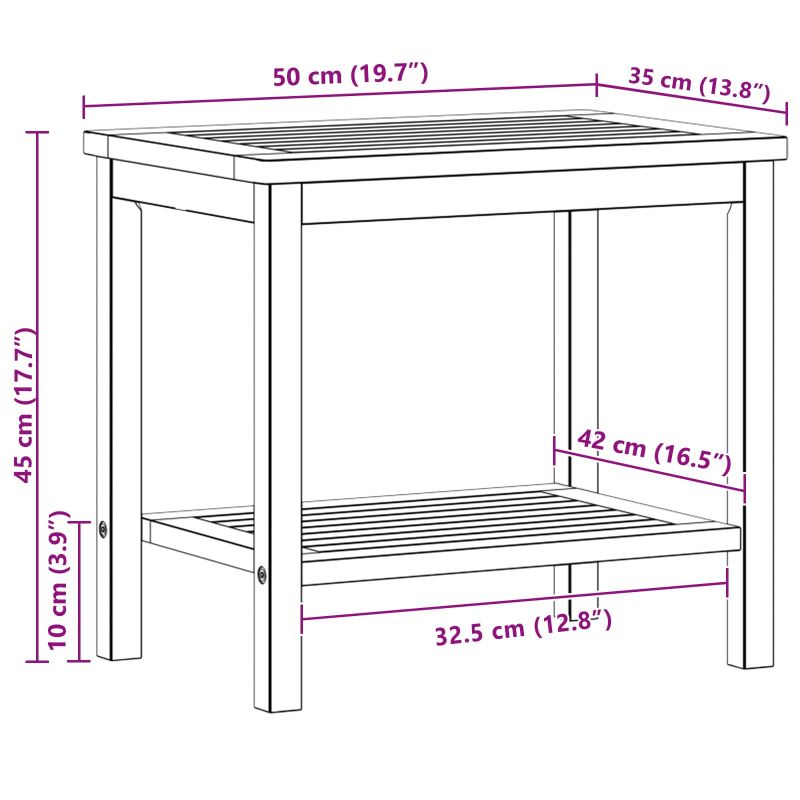 Тази странична маса в градински стил, изработена от масивна акациева дървесина, е идеалният акцент за всяко пространство. Тя съчетава здравина и рустикален чар, внасяща естествена красота в градини, тераси или даже в дома. Стилният ѝ дизайн е подходящ както за модерни, така и за класически интериори. Перфектна е за тези, които търсят функционална елегантност, като поддържа напитки, книги и декорации. Материали: Тази маса е направена от масивна акациева дървесина, известна със своята здравина и привлекателен вид. Така структурата ѝ е перфектна за всекидневна употреба без загуба на чар. Естествените цветове на дървото добавят топлина и стил, подходящи както за рустикални, така и за модерни среди. Включени компоненти: Дизайнът с рафтове и здрава рамка от акация предлага отлична поддръжка за вашите вещи. Краката от масивна акациева дървесина придават стабилност и дълготрайност на масата, като я правят удобна за употреба. Характеристики / Функция / Дизайн: Рустикалният стил на масата лесно се интегрира във всеки интериор, като предлага универсален дизайн, отговарящ на естетическите нужди. Здравата конструкция гарантира, че остава стабилна, независимо от къде я ползвате. Препоръчителни приложения: Идеална за тераси, градини или до басейни, масичката е перфектната платформа за релаксация или социални събирания. Нейният ненатрупан вид позволява многофункционалност, от поставяне на напитки до саксии, правейки я ценен аксесоар за всеки дом. Грижа и поддръжка: Лесно е да поддържате масата в добър вид - просто я избърсвайте с влажна кърпа, за да премахнете праха и замърсяванията. За дълготрайна употреба, насякъде я покривайте при лошо време, за да я защитите през сезоните.
