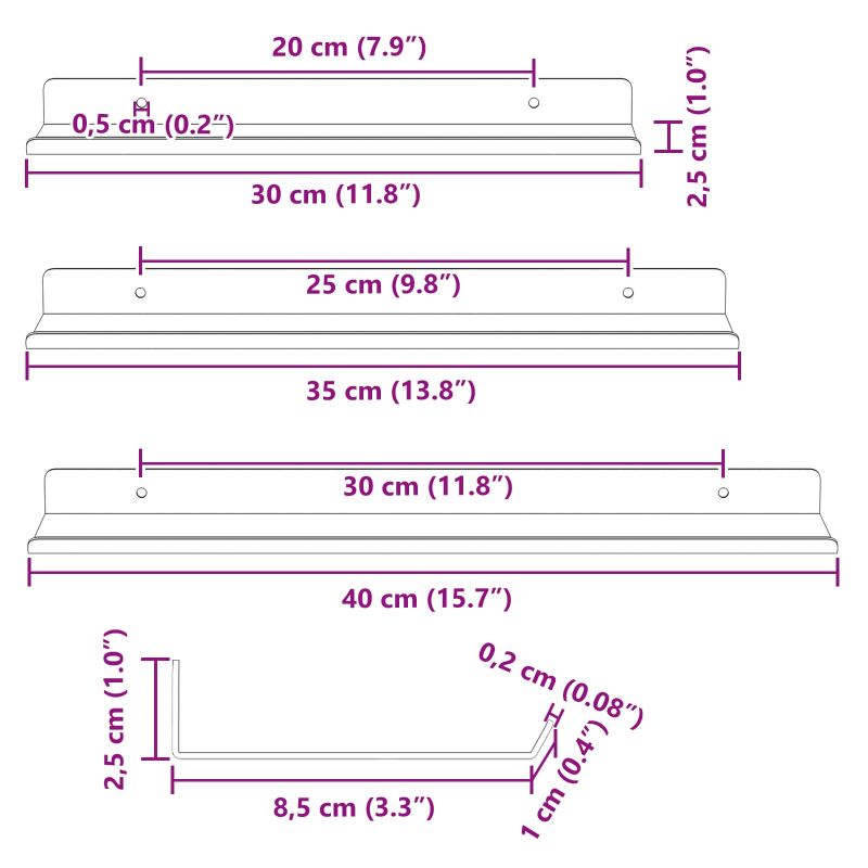 Този стенен рафт е идеален за всеки модерен дом. Със здрава стоманена конструкция и матово покритие, той изглежда стилно и практично. Подходящ е за малки пространства, като помага на потребителите да покажат ценни вещи. Независимо дали е в хола, кухнята или банята, той добавя визуална стойност и позволява на всеки да изрази индивидуалността си. Матова стоманена конструкция Този стенен рафт е направен от здрава стомана, която издържа на ежедневно натоварване. Матово покритие подчертава модерния му вид, с гладка повърхност, която пасва на всякакви интериори. Дизайн за стенен монтаж Тези рафтове спестяват място на пода и предлагат достатъчно място за съхранение. Идеални за всякакви стаи, те осигуряват елегантен вид и подобряват организацията в дома. Лесна инсталация Всяка единица идва с необходими инструменти за бързо и лесно сглобяване. Препоръчва се двама да правят инсталацията, за да е сигурно, че рафтът е закован здраво. Универсална употреба Може да се използва за книги, вази и тоалетни принадлежности. Лесно се поддържа с влажна кърпа, запазвайки външния му вид свеж. Лесна поддръжка Просто изтривайте за прах и избягвайте агресивни химикали за дълготрайна визия.