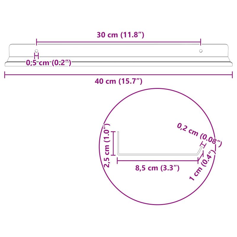 • Общи размери: 40 x 8,5 x 2,5 см (Д x Ш x В)