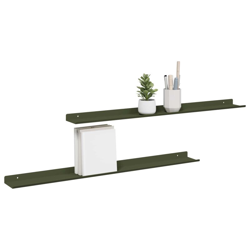Стенен рафт с рафт 2 pcs Маслинено зелено 80 x 9 x 2,5 см