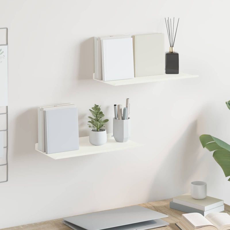 Стенен рафт с рафт със съхранение 2 pcs Бяло 40 x 18 x 2,5 см