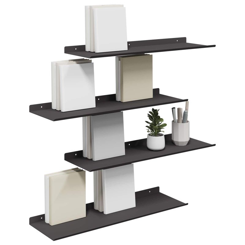 Стенен рафт с рафт със съхранение 4 pcs Черно 60 x 18 x 2,5 см