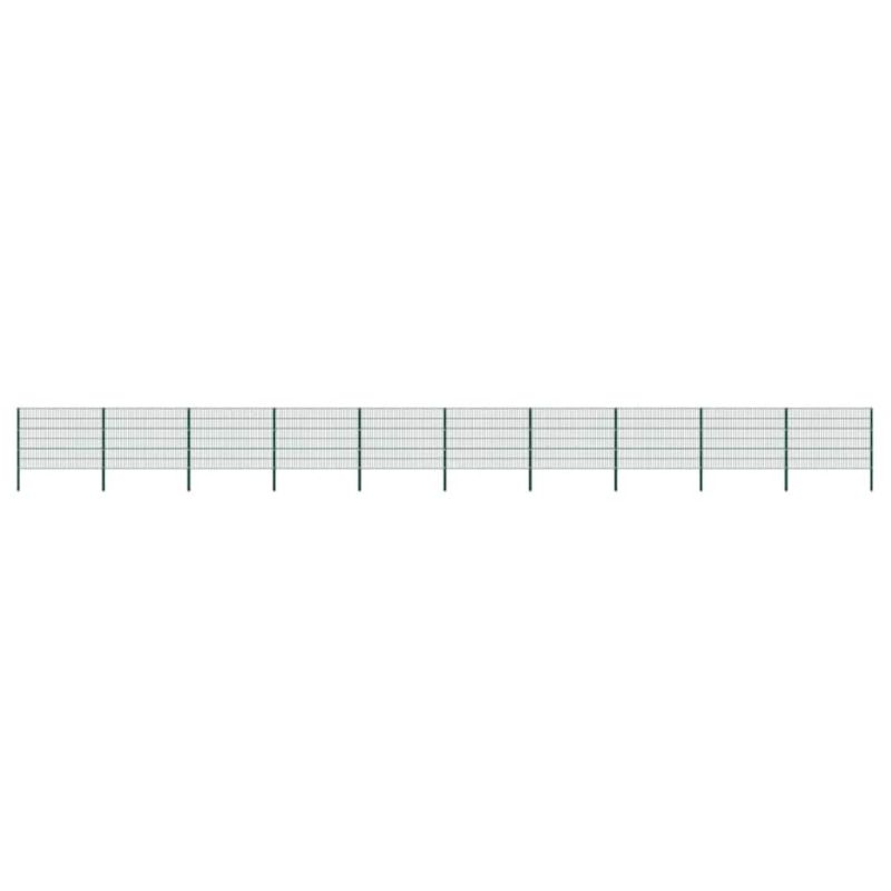 Отличаващ се с прост, но практичен дизайн, този комплект панели за градинска ограда със стълбове ще подхожда перфектно на всяка градина. Изработен от устойчиво на атмосферни влияния и устойчиво на корозия желязо с прахово покритие, този комплект панелни огради е изключително здрав и издръжлив. Комплектът ограда е лесен за поставяне и ще образува страхотна бариера, за да държи нежеланите гости далеч от вашата градина или вътрешен двор. Доставката включва 30 х 2 D оградни панела и 11 кола.
