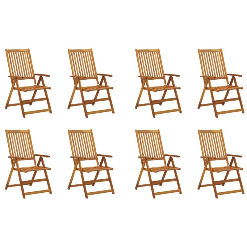Сгъваеми градински столове с възглавници, 8 бр, акация масив