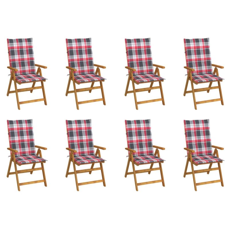 Сгъваеми градински столове с възглавници, 8 бр, акация масив