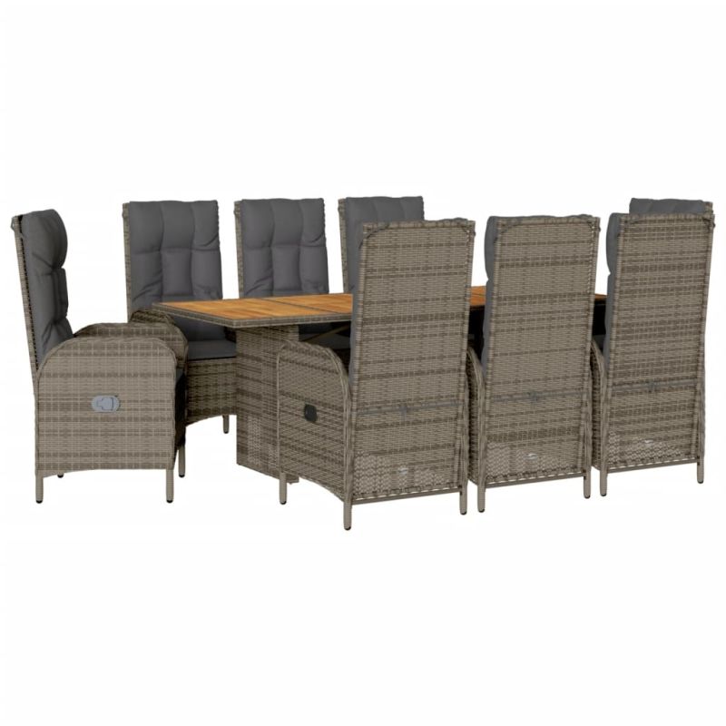 Градински трапезен комплект 9 части с възглавници сив полиратан