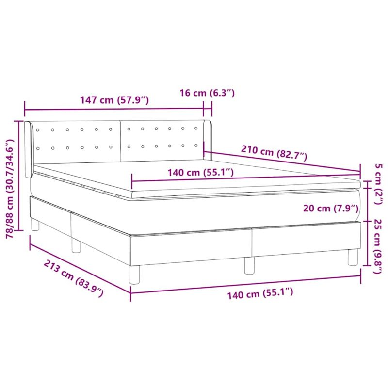 Използвайте това боксспринг легло, за да се насладите на спокоен сън! Предлага ви максимален релакс и приятен сън. Мек и удобен материал: Кадифената материя се отличава с мека и гладка повърхност, която създава приятно усещане върху кожата, като ви носи топлина и максимален комфорт.Матрак с джоб пружини: Този матрак с джоб пружини има индивидуални пружини с джобчета, които работят независимо, за да осигурят персонализирана опора, като реагират само на натиска във всяка област. Този дизайн предотвратява "свличането" към средата на матрака и намалява прехвърлянето на движение в сравнение с традиционните матраци с отворени намотки. Всяка покет пружина поддържа тялото индивидуално.Универсална табла за глава: Тази рамка за легло е снабдена с табла, която осигурява отлична опора на гърба, когато седите в леглото, за да четете или гледате телевизия, и същевременно служи като декоративен елемент. Височината на таблата може да се регулира, за да отговаря на вашите предпочитания.Удобен горен матрак: Този топ матрак подобрява опората и комфорта със своята мека, дишаща повърхност, като същевременно удължава живота на вашия матрак. Подвижният му калъф позволява лесно изпиране, което прави поддръжката лесна.Решетъчна основа за оптимална опора: Рамката на леглото е оборудвана с решетъчна основа за опора и дишане на вашия матрак. Добре е да се знае:От съображения за хигиена не можете да върнете матрака, ако опаковката е била отворена или премахната.