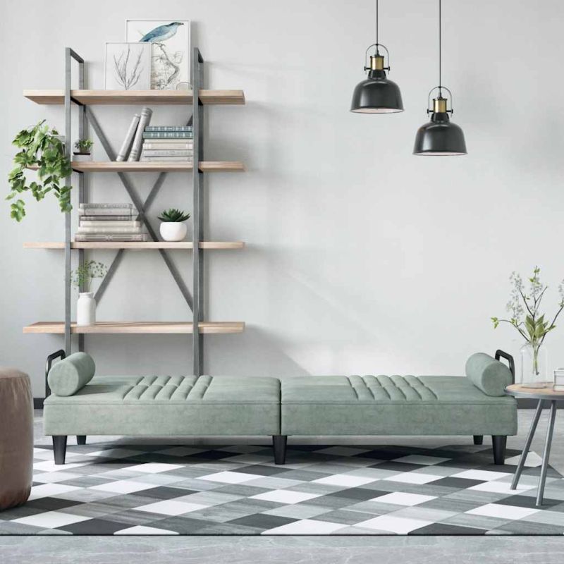 Начало Дом и градина Мебели Дивани Разтегателно канапе с подлакътници, светлосиво, кадифе