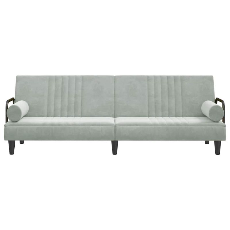 Разтегателно канапе с подлакътници, светлосиво, кадифе