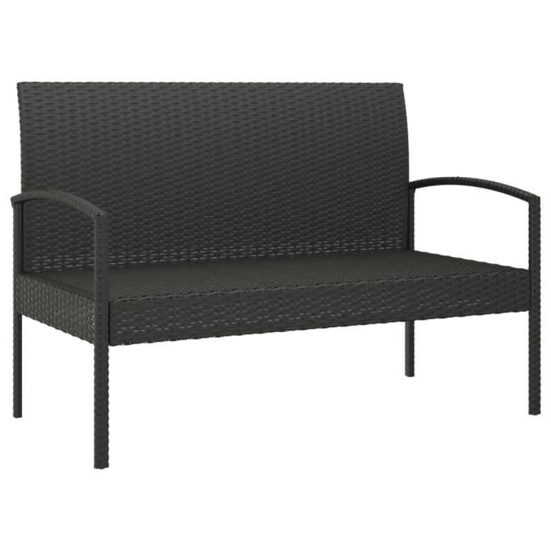 Градинска пейка с възглавница, черна, 105 см, полиратан